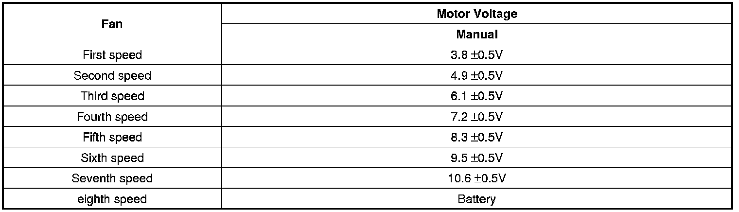 2. Manually operate the control switch and measure the voltage of blower motor between pin 1 and 2.