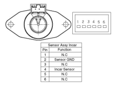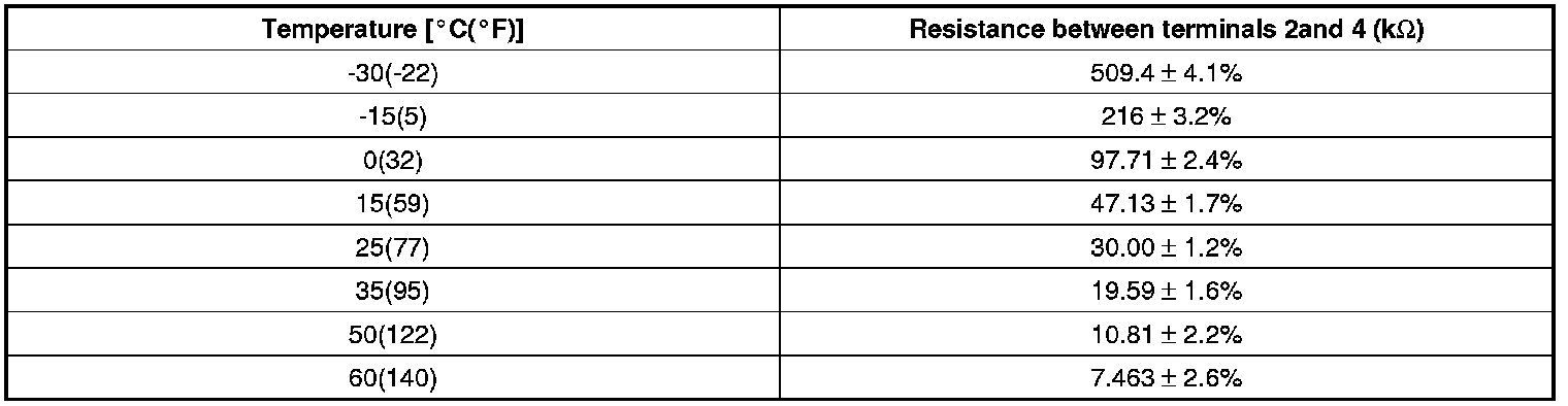 2. Blow air with changing temperature to the in car sensor air inlet. Measure sensor resistance between 2 and 4 terminals.