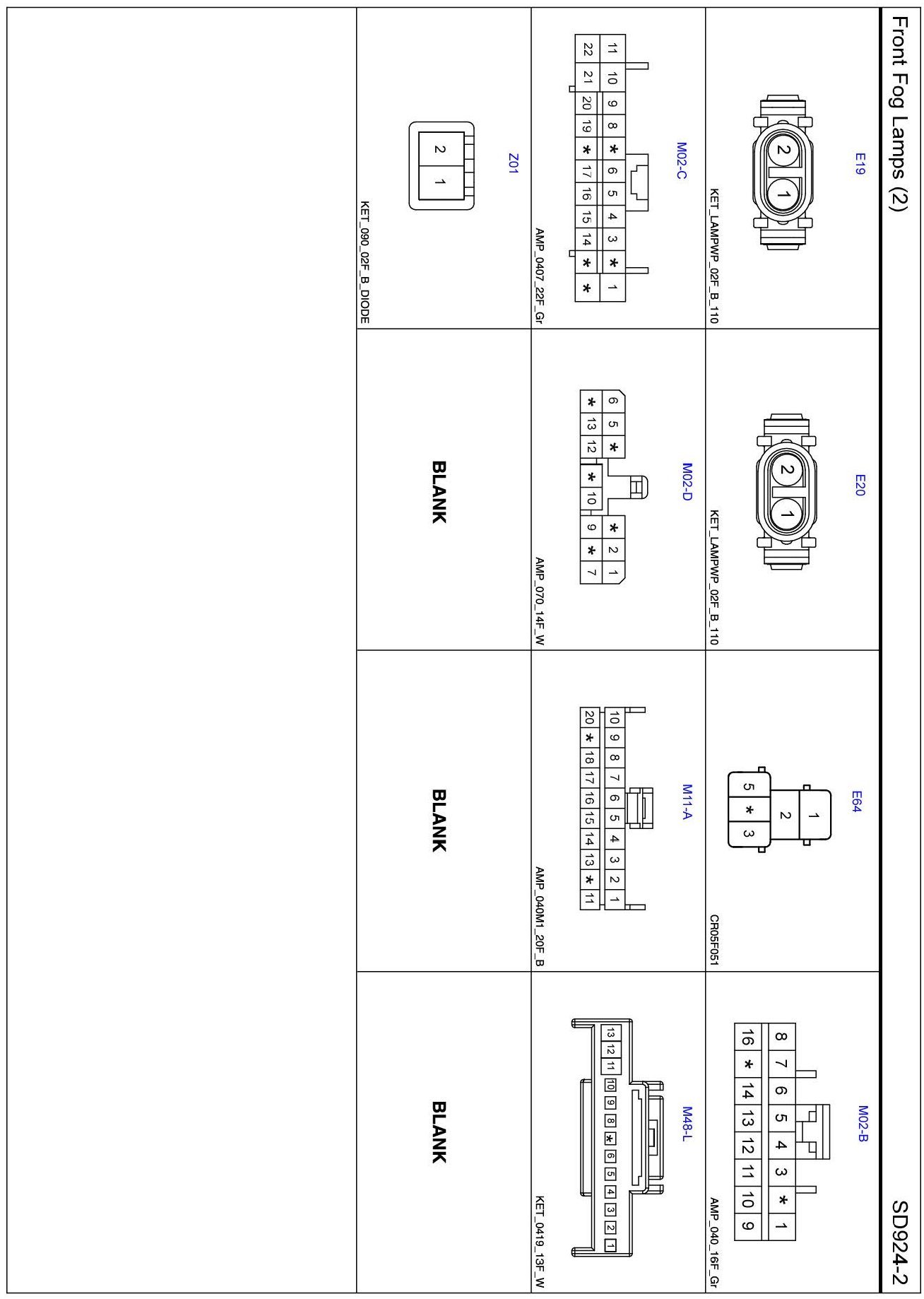 Front Fog Lamps (2) Connector Pin Outs:
