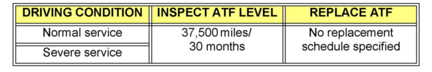 NOTE: The Genesis V8 and Genesis Coupe V6 use synthetic automatic transaxle fluid (ATF). Use only ATF meeting the M-1375.4 specification approved by Hyundai Motor Company. DO NOT use SPIII or other ATF which may result in degradation of shift quality or transaxle durability.