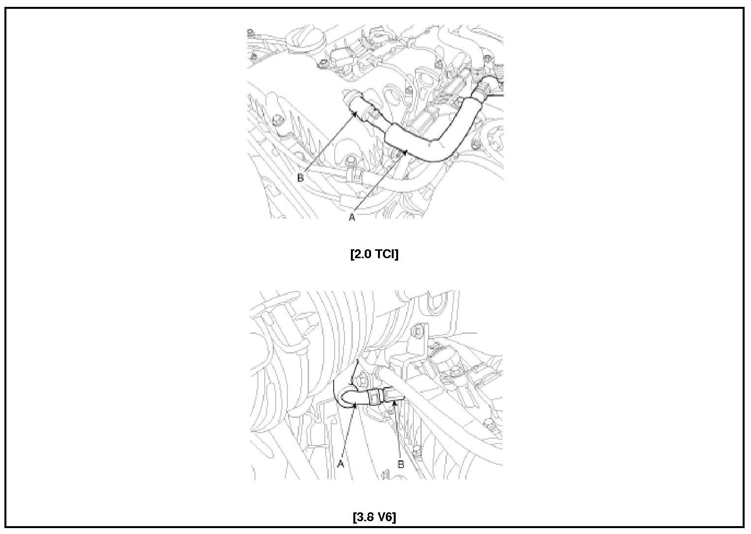 2. Remove the PCV valve (B).