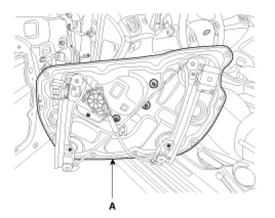 2. Loosen the door module mounting bolts, remove the door module (A).