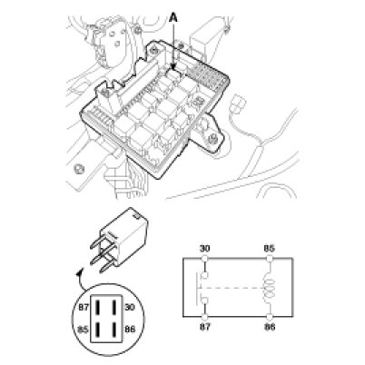 1. Remove the horn relay (A) from the engine room relay box.