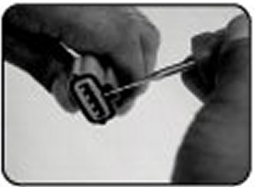 - Flat tip type: Removal of single locking male/female terminal from the connector.
