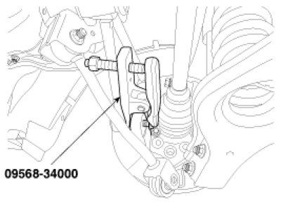 3. Separate the assist arm from the rear axle ball joint by using SST (09568-34000).