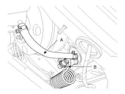 6. Install the flexible hose (A) to the brake reserve tank.