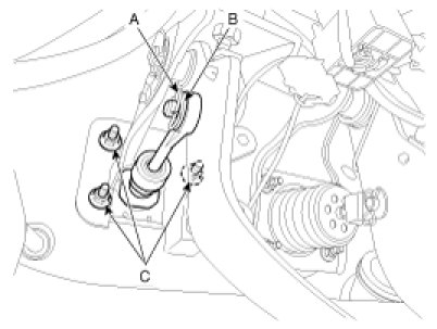 5. Remove the clutch pedal mounting nut (C-3ea).