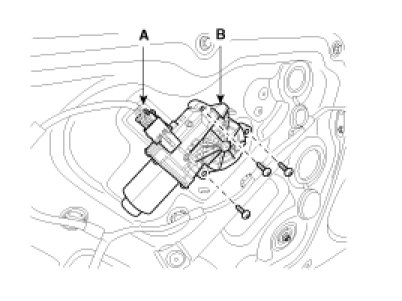 2. After disconnecting the connector (A), remove the power window motor (B).