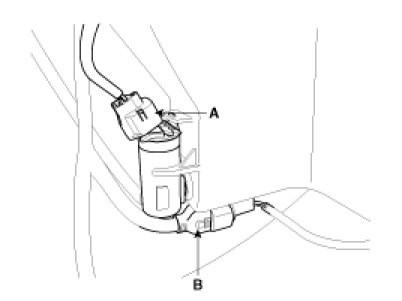 3. Remove the washer hose and disconnect the washer motor connector(A) and level sensor connector(B).