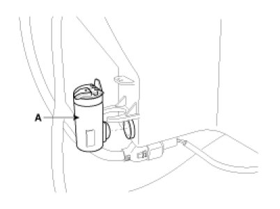 6. Remove the washer reservoir (A) after removing 2 bolts.