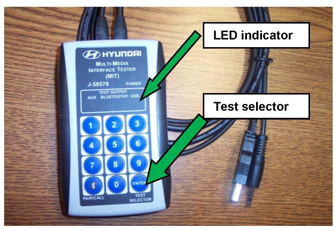 To confirm head-unit functionality, the MIT device plays an audio file corresponding to one of the connection verifications that has been successfully completed. If an audio playback is heard corresponding to the test attempted, the head-unit has passed the test.
