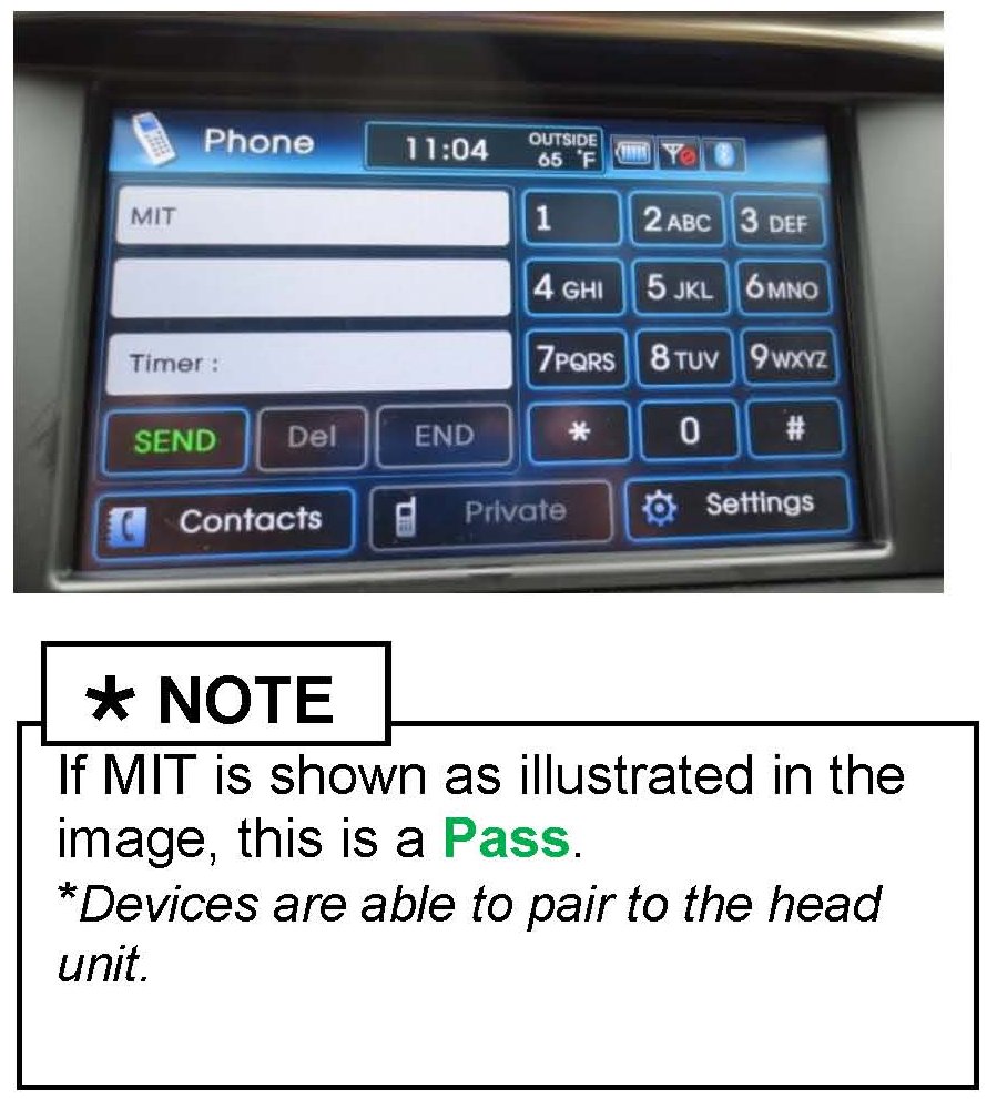 9. If Bluetooth pairing was successful using the MIT, the head-unit will display its normal connection pass/fail message.