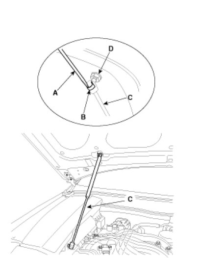 Using a screwdriver (A), lift the socket clips (B) up slightly on both ends of the lifter (D), and then remove the lifter from the bracket (C).