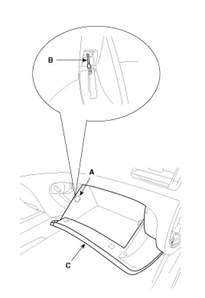 2. Disconnect the damper (B) from the glove box (A).