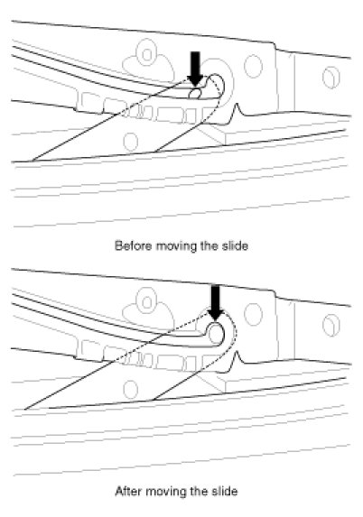 3. After moving the slide 5mm forward, turn OFF the switch and push the UP switch (Keeping on pushing the switch with continuous operation)