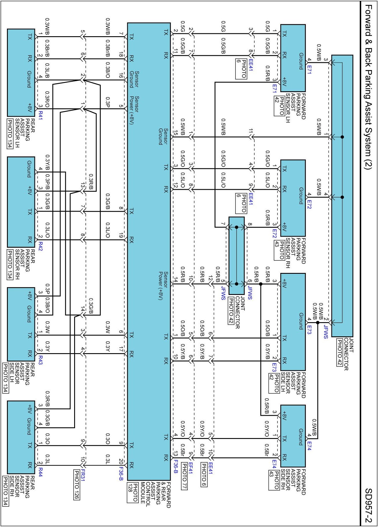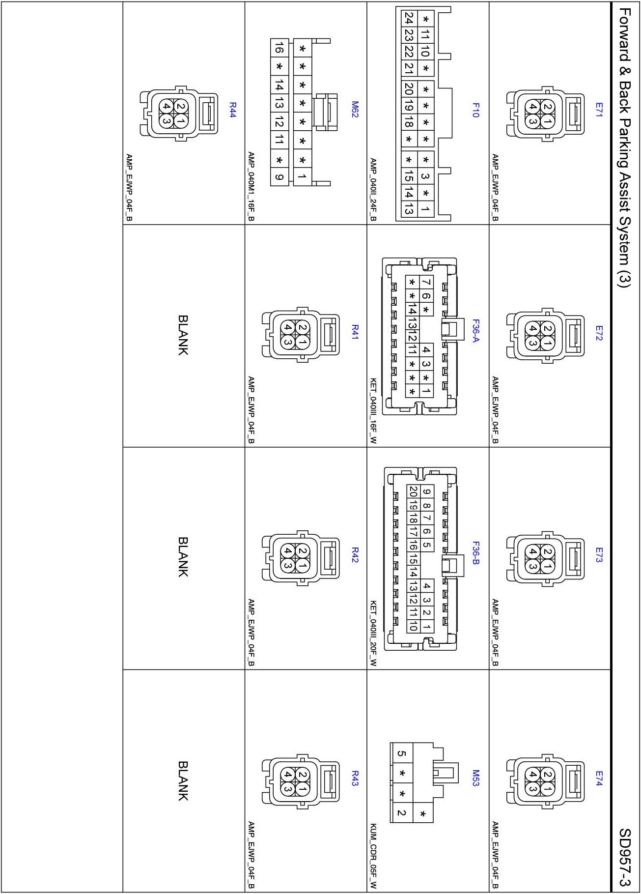 Forward & Back Parking Assist System (3) Connector Pin Outs:
