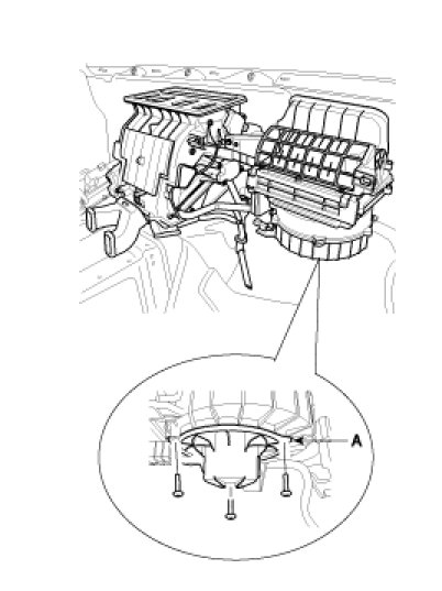 4. Remove the blower motor (A) after loosening the mounting screws.