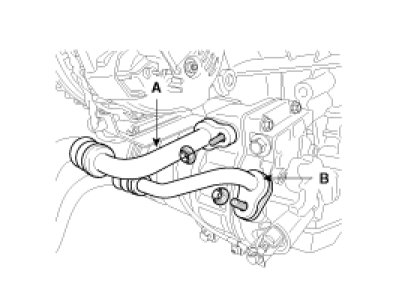 5. Remove the bolts, then disconnect the suction line (A) and discharge line (B) from the compressor. Plug (C) or cap the lines immediately after disconnecting them to avoid moisture and dust contamination.