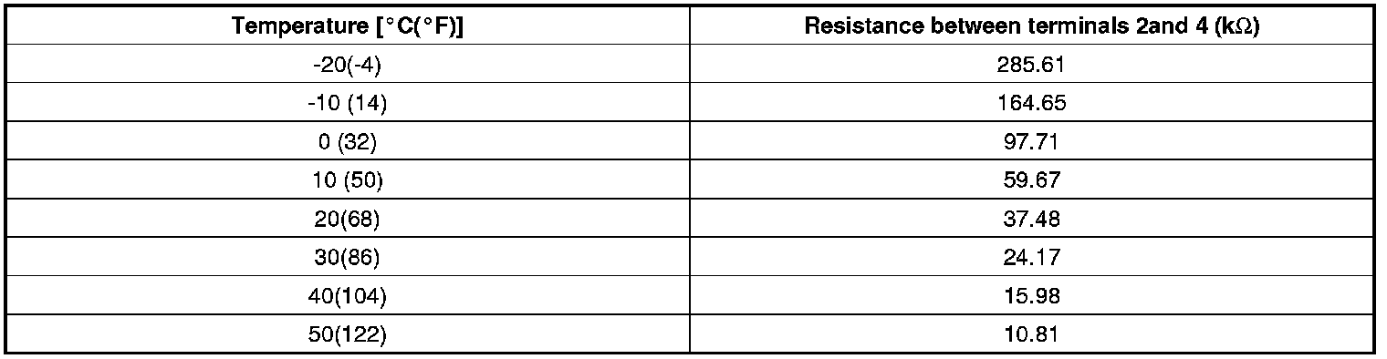 2. Blow air with changing temperature to the in car sensor air inlet. Measure sensor resistance between 2 and 4 terminals.