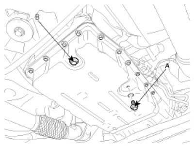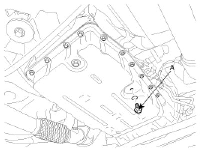 3. Using a TORX wrench, remove the overflow plug (A) and the gasket under 30°C(86°F) of ATF temperature.