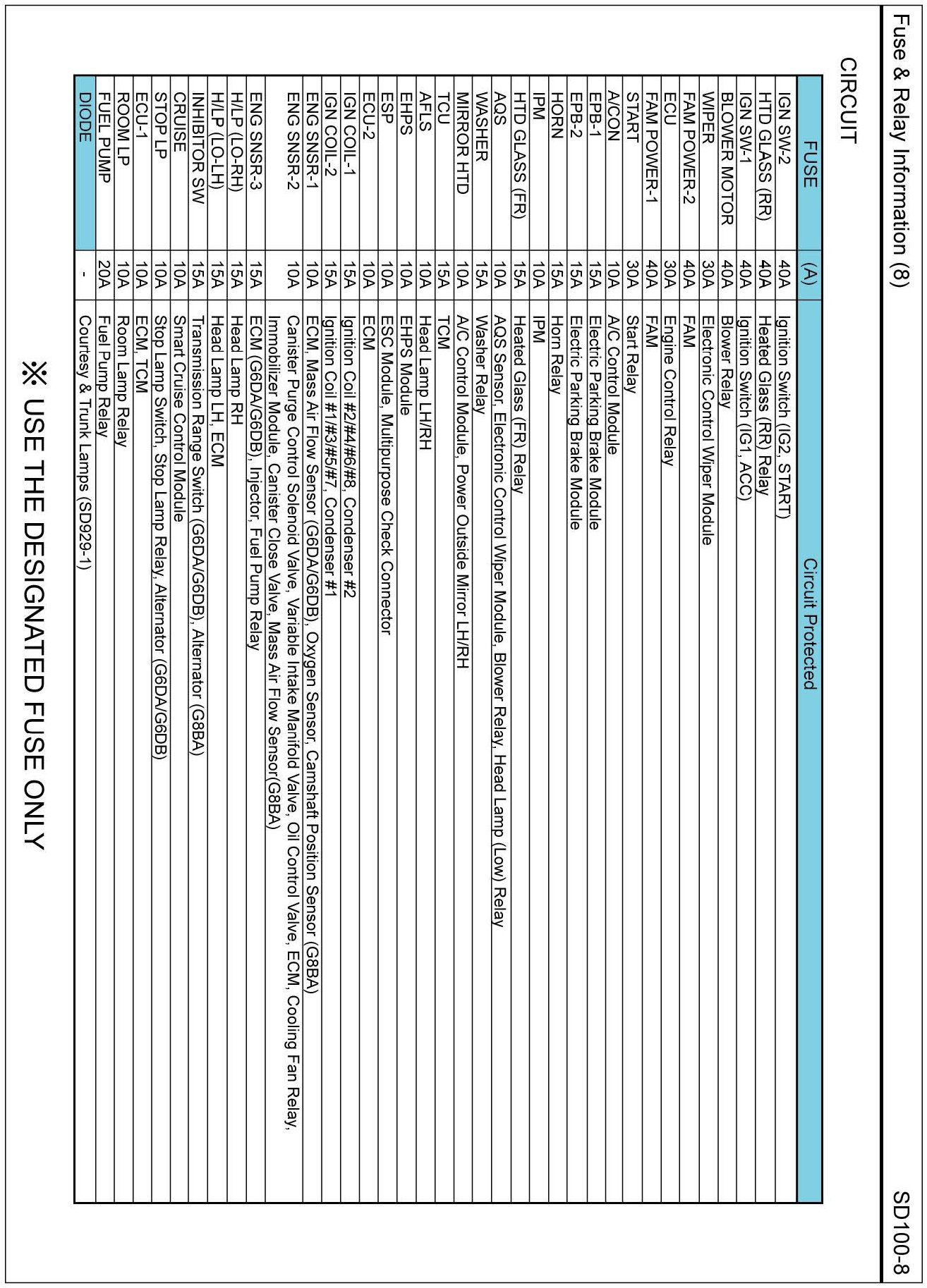 Fuse & Relay Box Circuit Details: