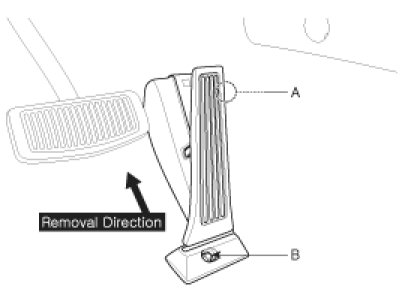 3. Remove the accelerator pedal in the direction of "Remove Direction" in the figure after removing the mounting bolt (B).