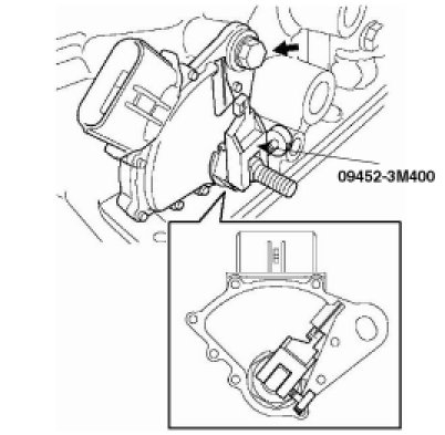 6. Align the reference line of the special service tool(09452-3M400) with the neutral reference line of the neutral start switch, and tighten the bolt.