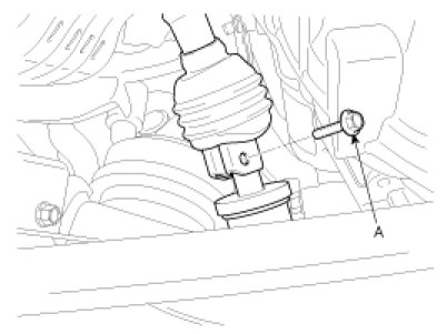 8. Loosen the bolt (A) and then disconnect the universal joint assembly with the steering column assembly.