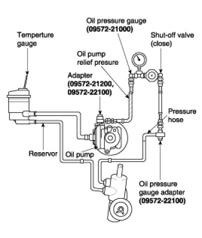 4. Close the shut-off valve of the special tools and measure the fluid pressure.