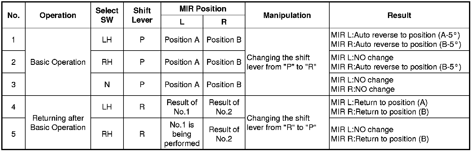 6. Out side mirror AUTO reverse operation