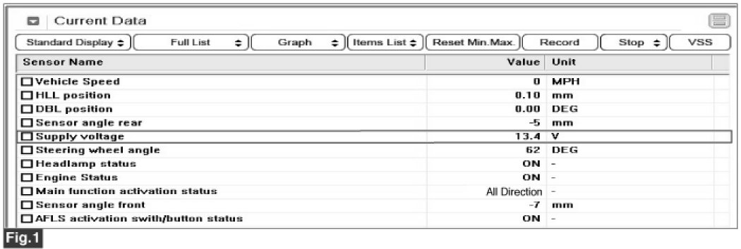 Adaptive Front Lighting System - B1102 Battery Voltage Low - Scantool Diagnostics