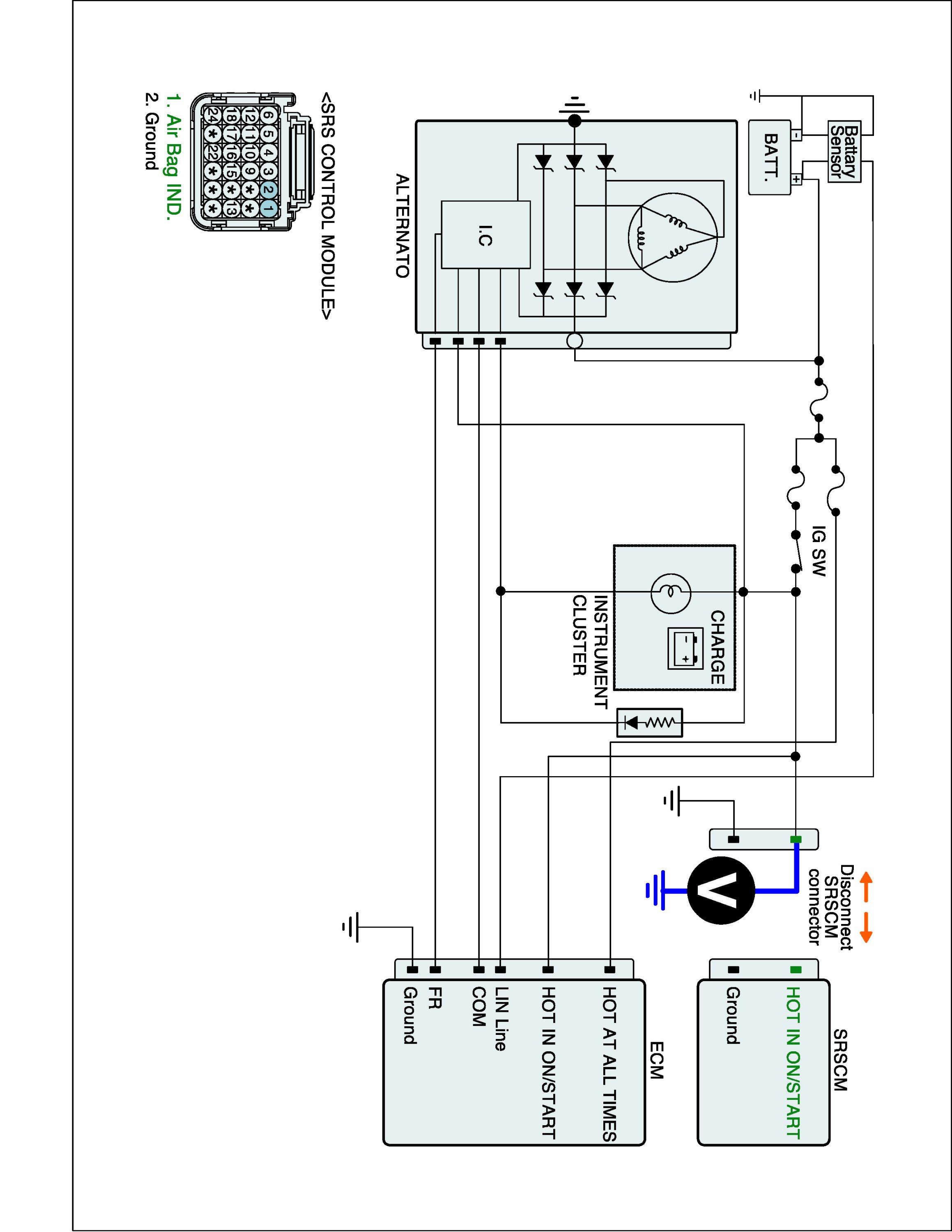 5. Measure voltage between power terminal of the SRSCM harness connector and chassis ground.