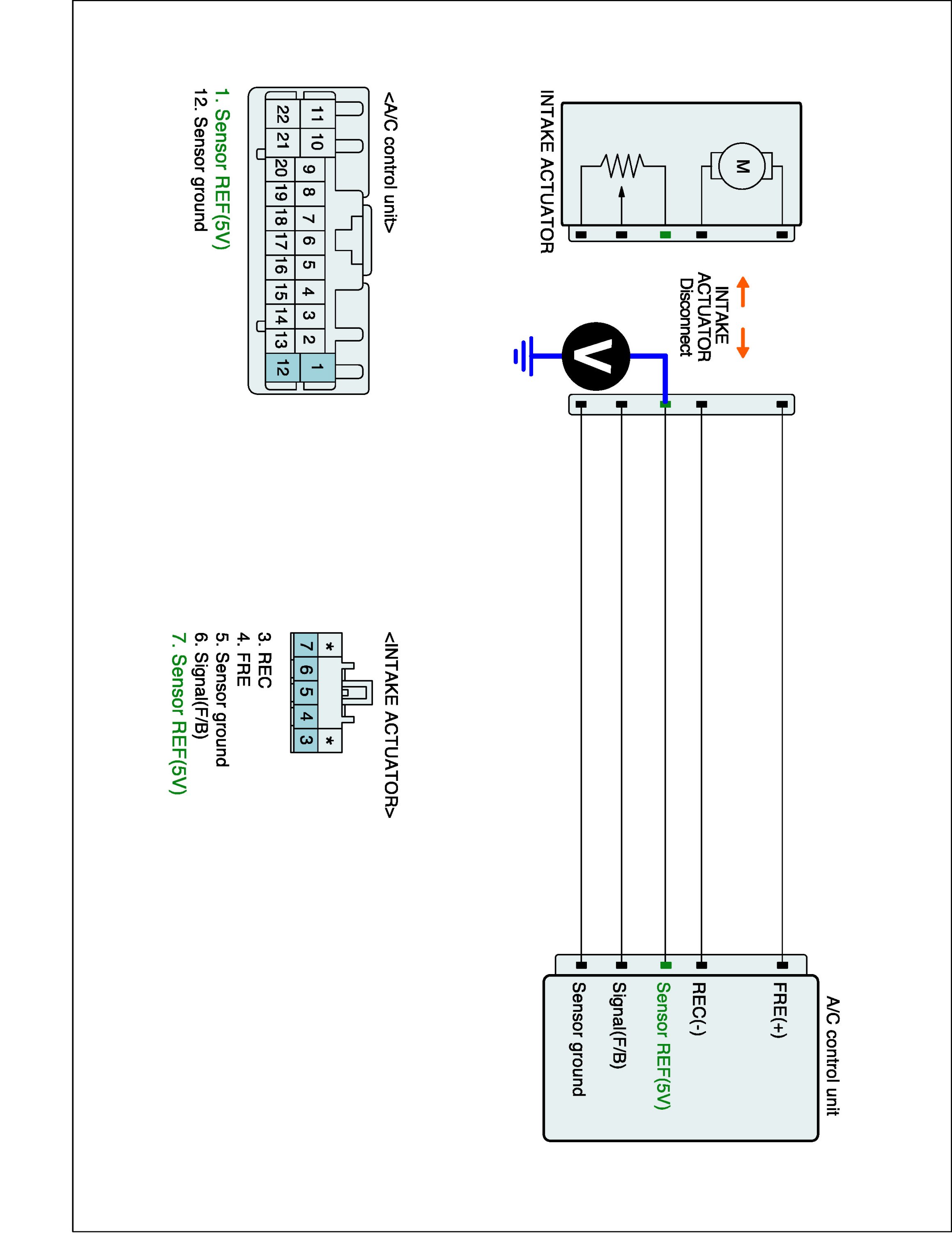 2. Disconnect Intake actuator and Connect A/C control unit main harness connector.