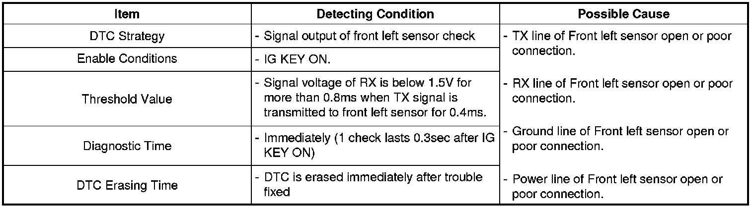 Front Back Warning System - B1210 Front Left Sensor Fault - General Information