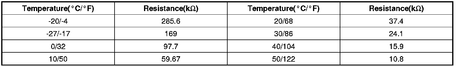 FIG.1) ** Specifications : Resistance value of incar sensor as a function of temperature.
