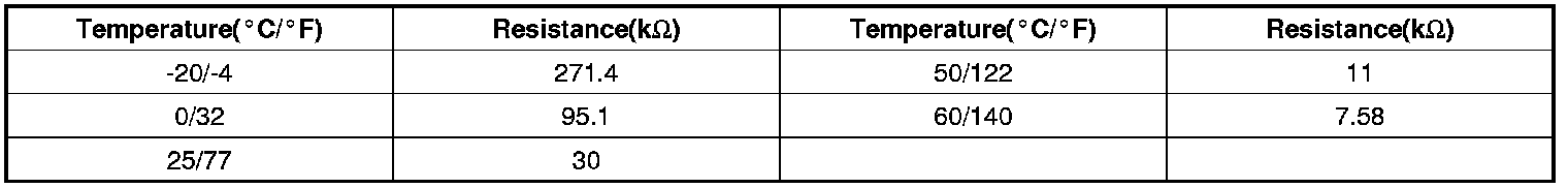 ** Resistance value of ambient temp.sensor as a function of temperature.