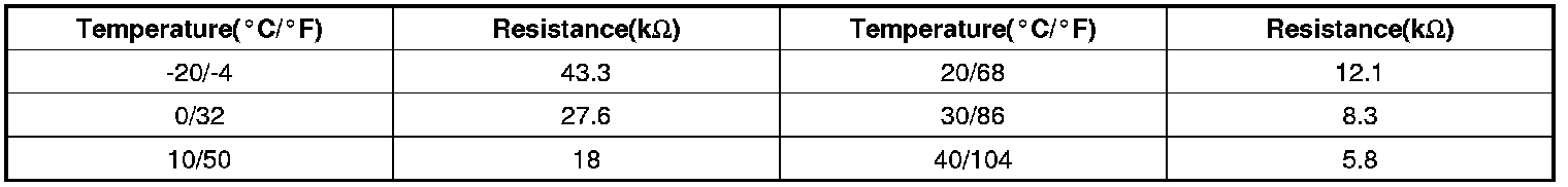 ** Resistance value of evaporator sensor as a function of temperature.