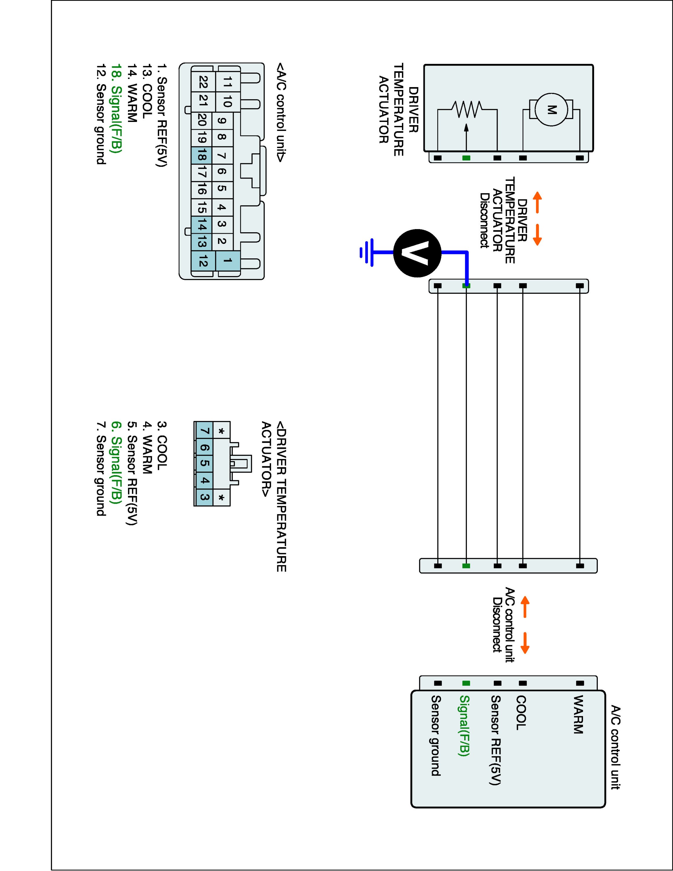 4. Measure voltage between Signal (F/B) terminal of Driver air mix actuator harness connector and chassis ground.