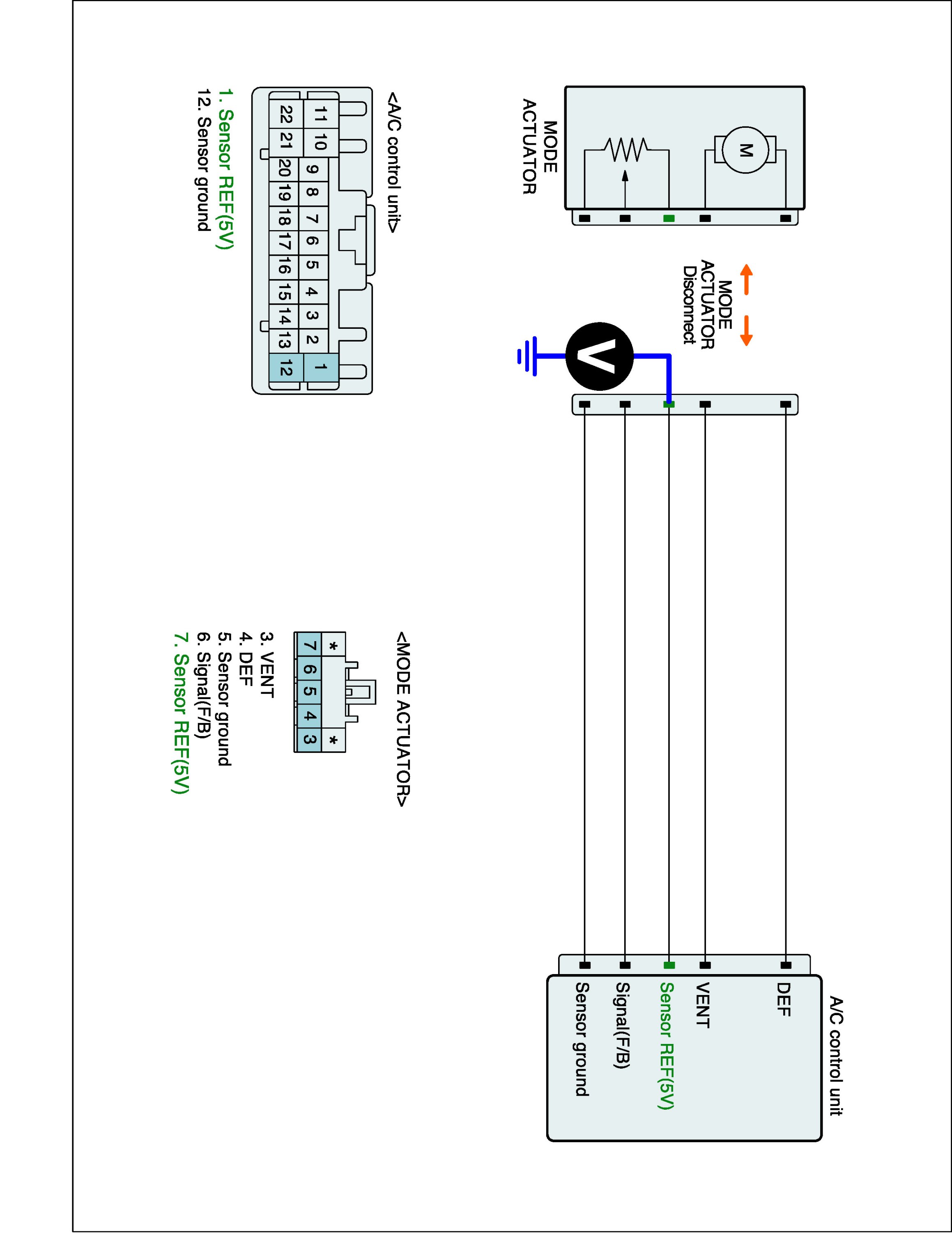 4. Measure voltage between Sensor REF (5 V) terminal of Driver Direction actuator harness connector and chassis ground.