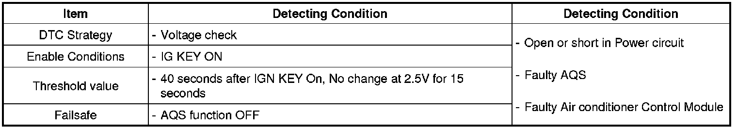 Air conditioner Control Module sets DTC B1259 if The signal of AQS sensor has not been changed since IG Key is ON.