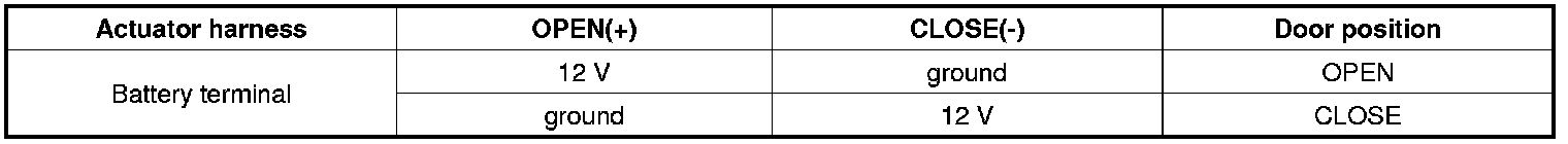 5. Verify that the Auto Defog actuator operates to the OPEN position with reverse connecting. (OPEN (+) and CLOSE (-)). (Component side)