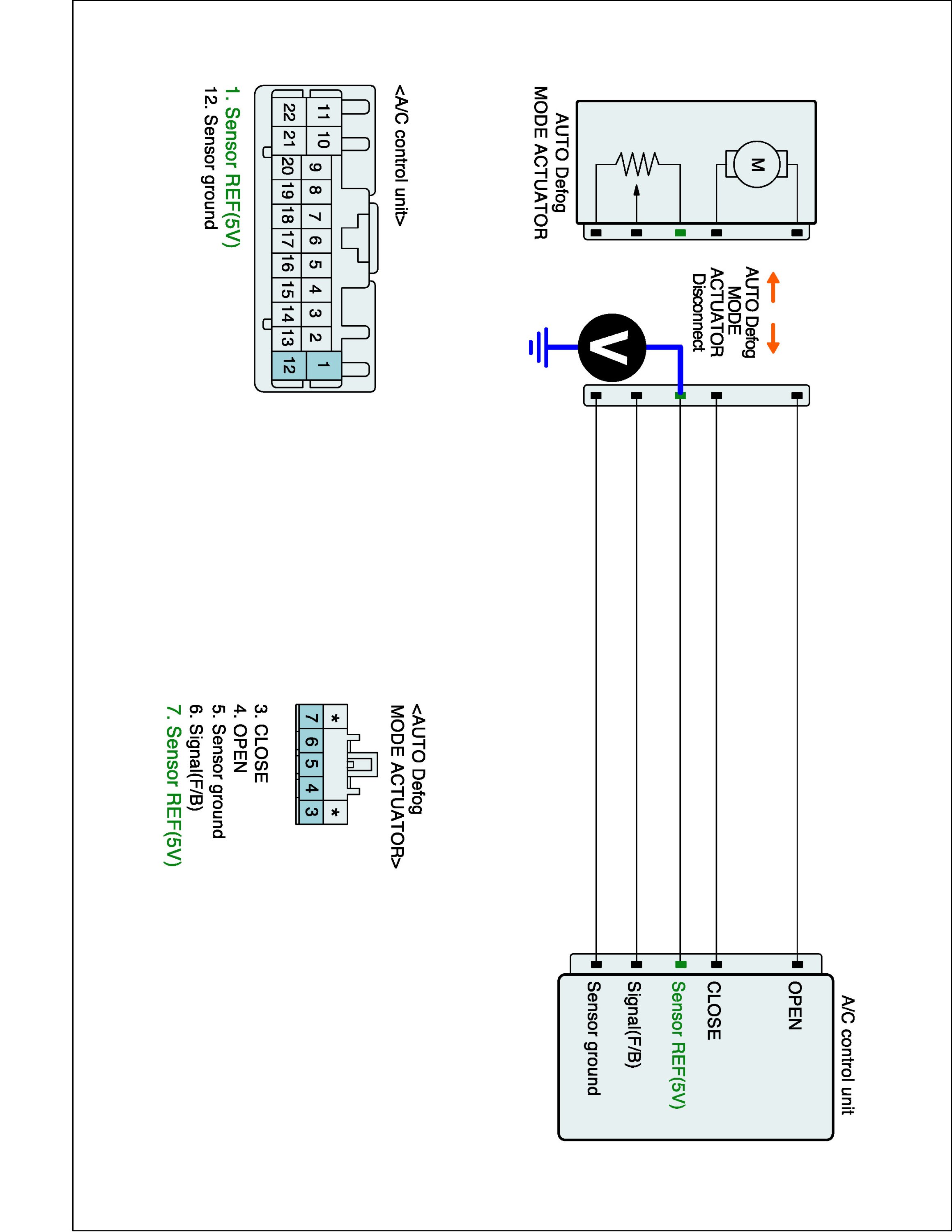 2. Disconnect Auto Defog actuator and Connect A/C control unit main harness connector.3. Ignition "ON"