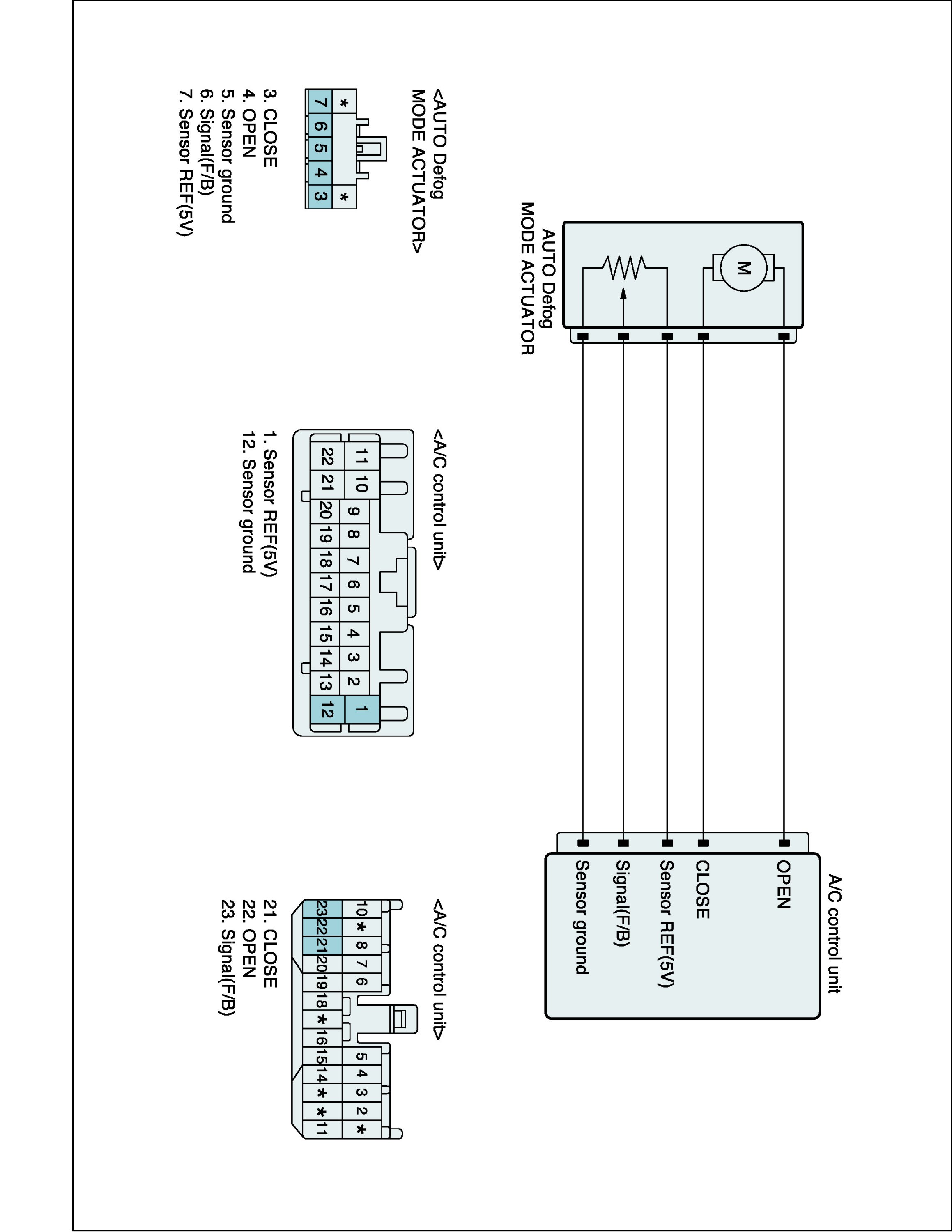 ** The voltage of auto defogger mode actuator in accordance with position