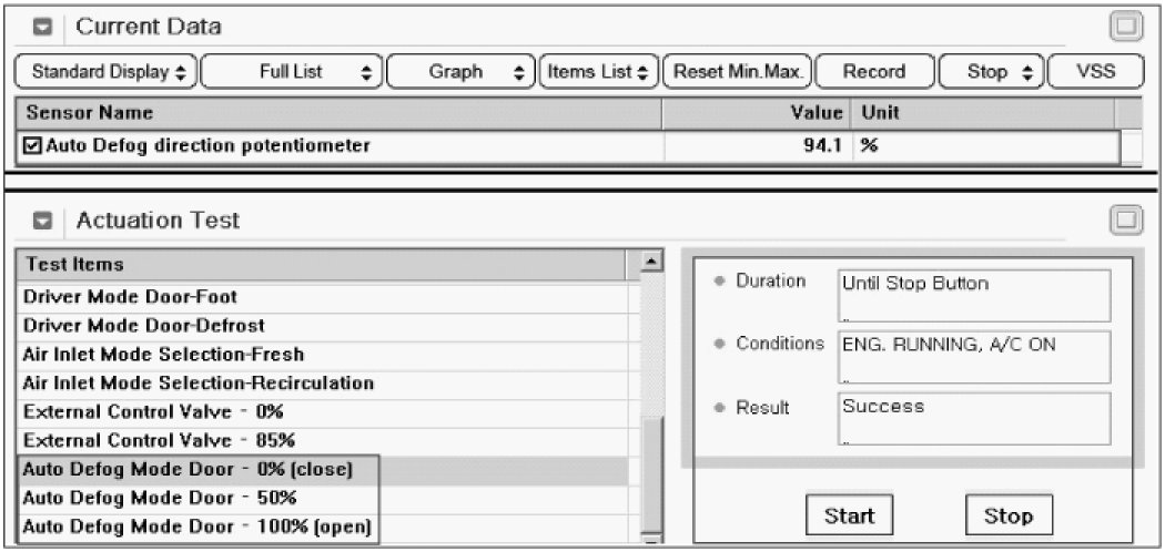 5. Check that the value of auto defogger mode actuator is changed with performing actuation test.