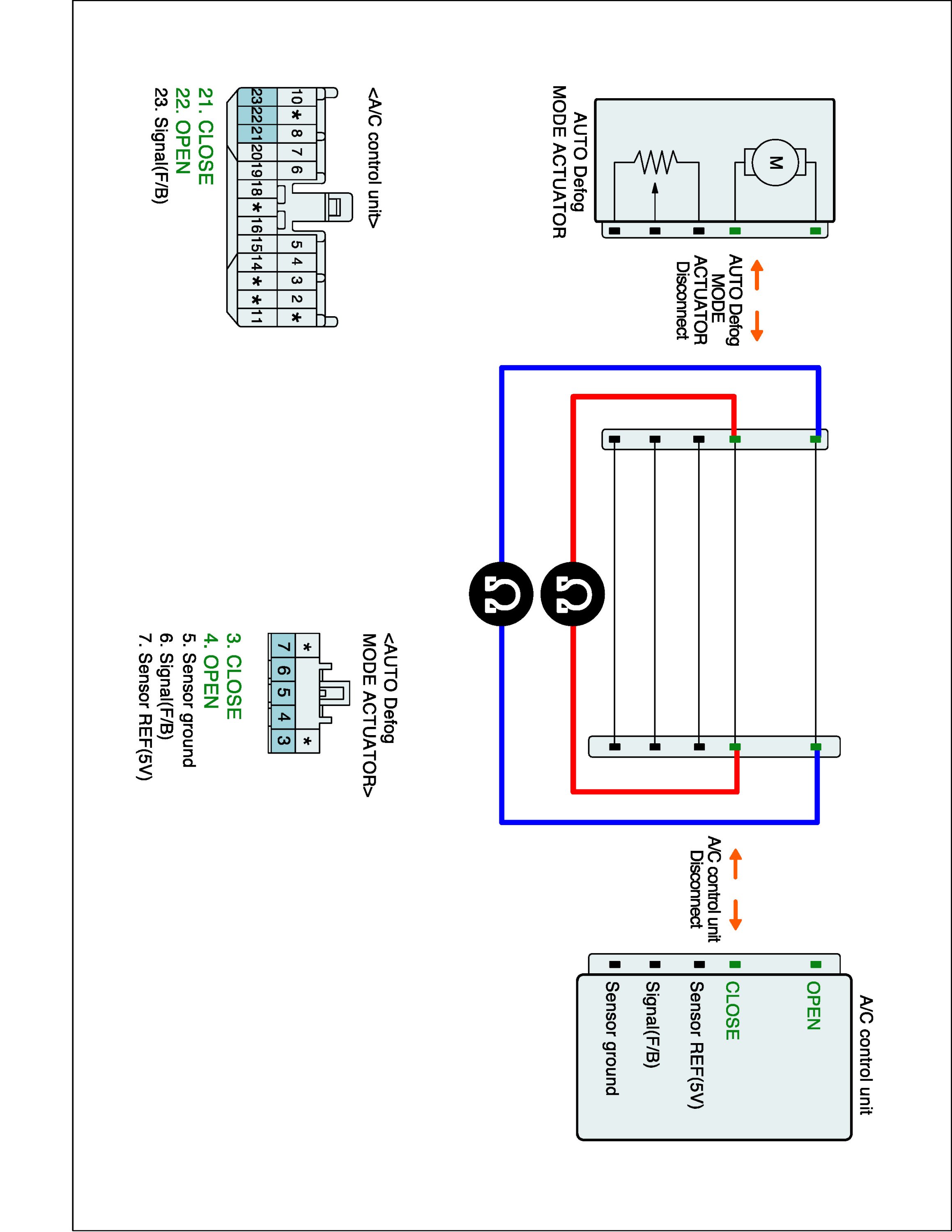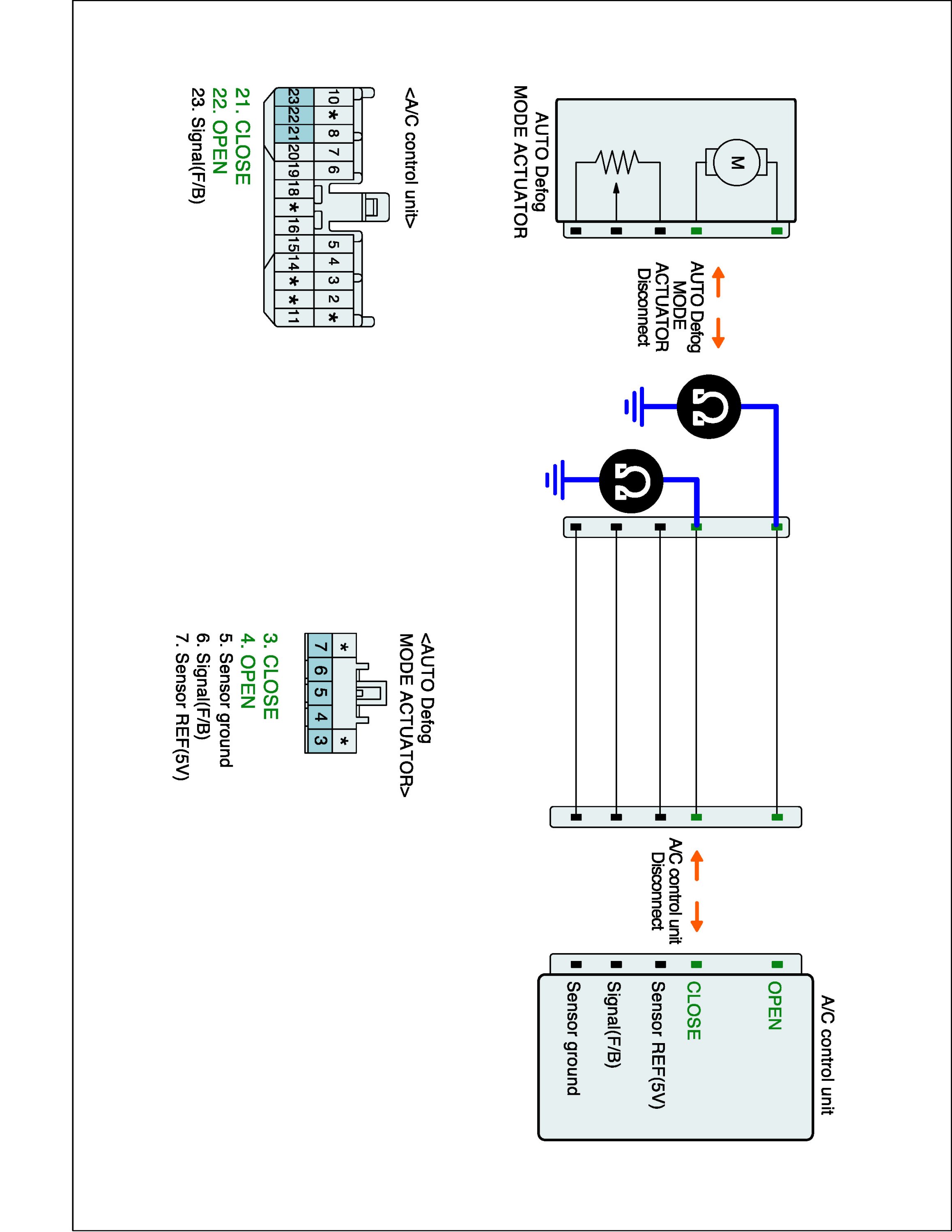 2. Disconnect Auto Defog actuator and A/C control unit main harness connector.