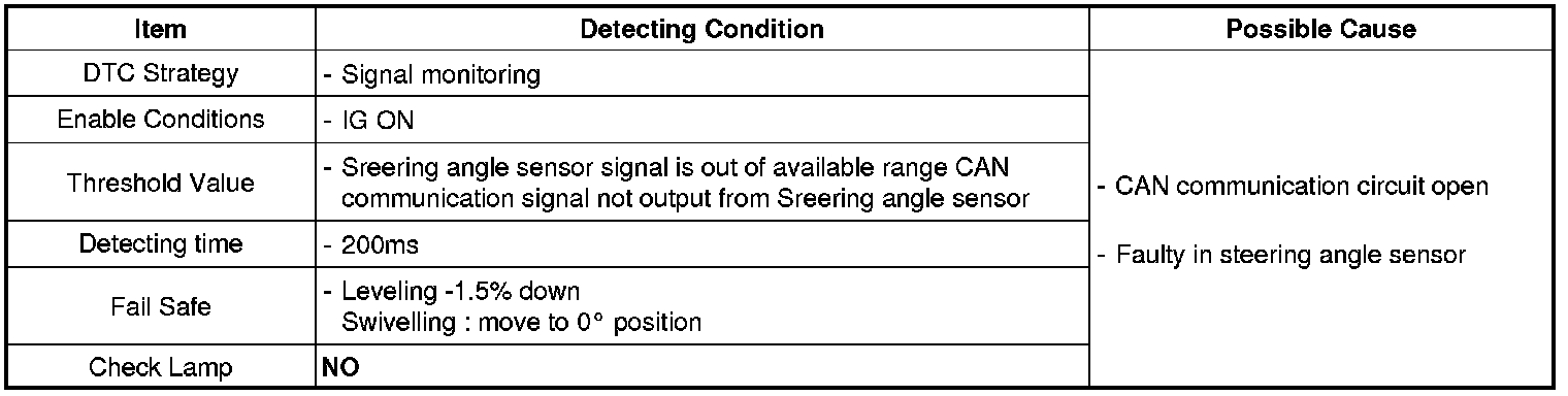 AFLS ECU set this code If input value (steering angle sensor's signal) is out of available range.