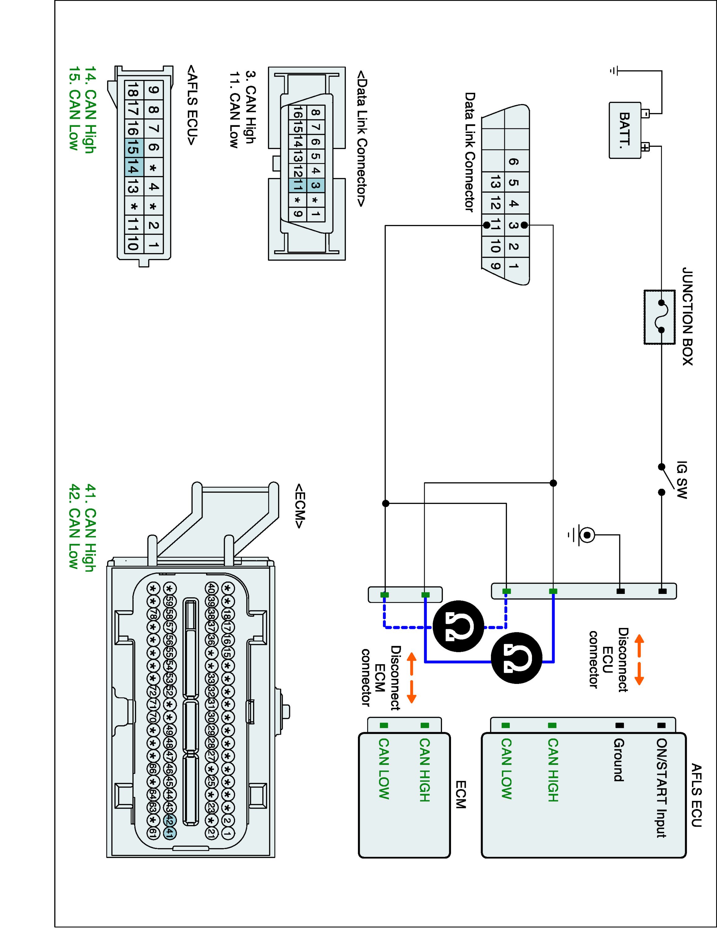 2. Disconnect ECM connector and AFLS ECU connector