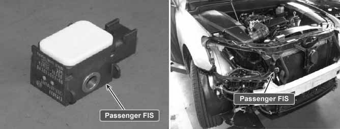 Front Impact Sensor (FIS)located at both sides of the front of engine room detects head-on collision. When FIS delivers collision signal to SRSCM, SRSCM checks if safing sensor located in SRSCM detects collusion.