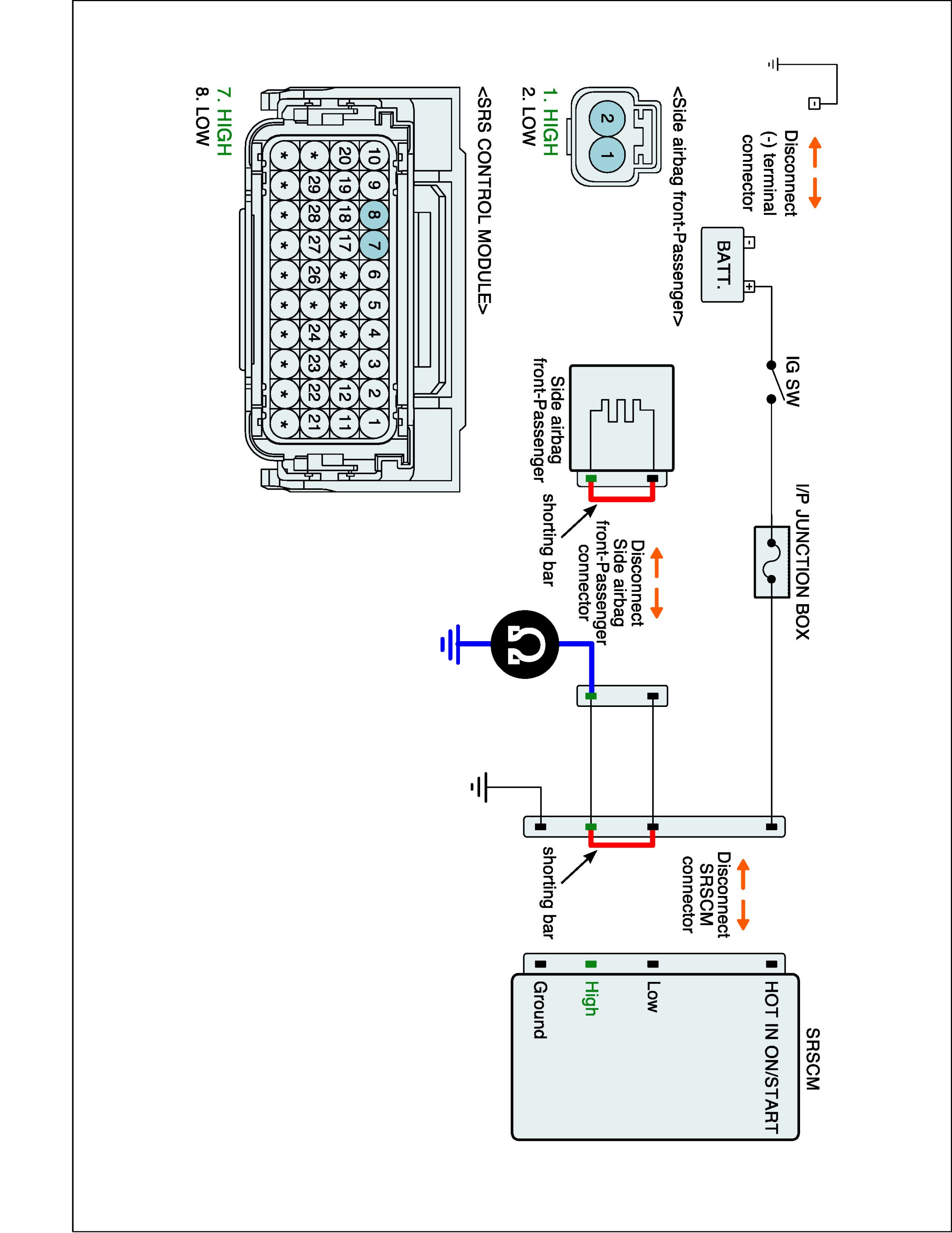 3. Disconnect PSAB connector and SRSCM main harness connector.