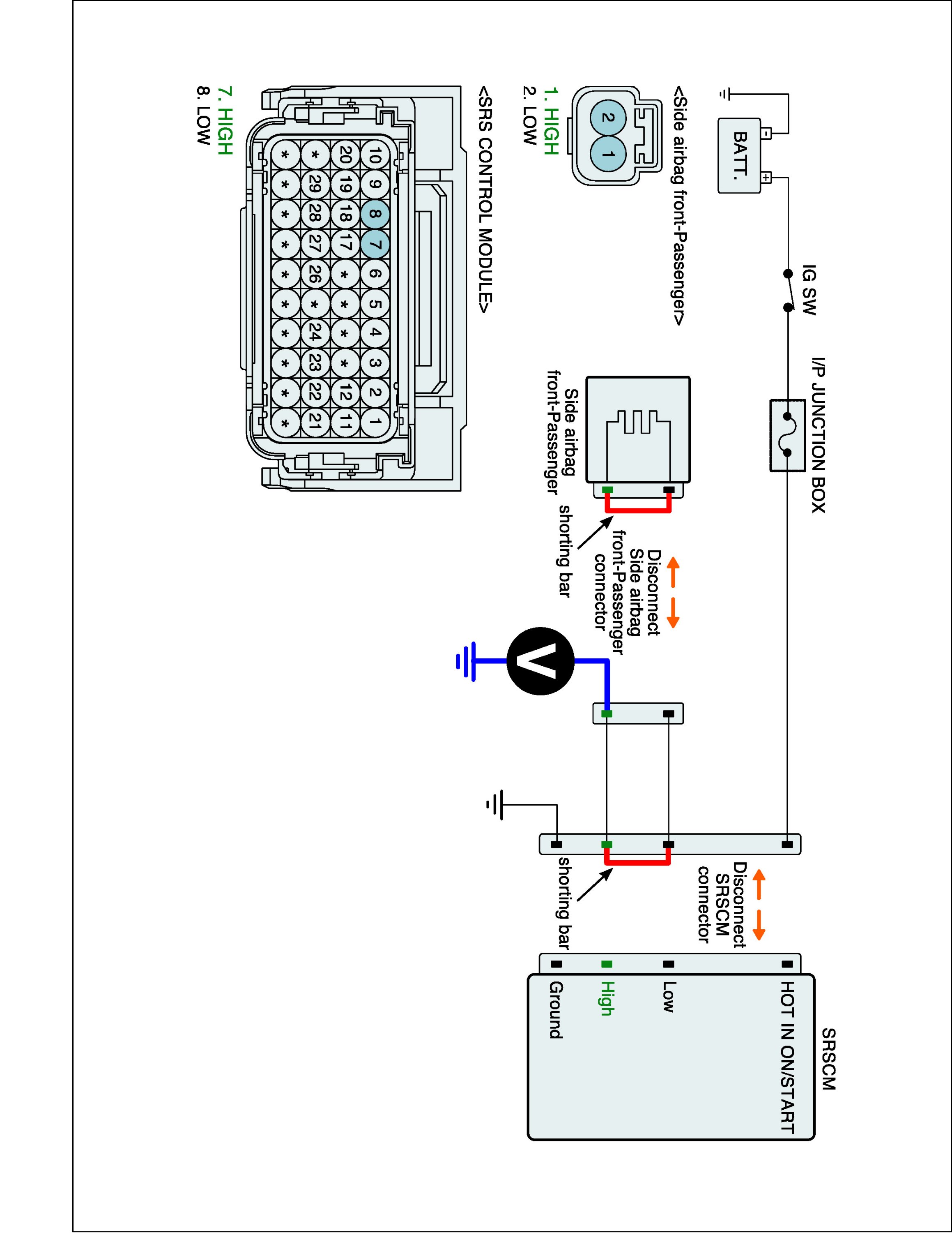 5. Measure voltage between terminal "Low" or "High" of the PSAB harness connector and chassis ground.